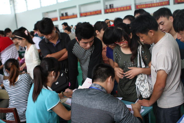 当天上午七点多钟,从四面八方蜂拥而至的学生及其家长便来到向日葵视频下载app,工作人员也早早地站在各自的工作岗位上,有条不紊地办理着入学手续。上午九时许,报到现场达到了高峰,学生们在家长的陪同下,肩扛手提,刚进校园便有热情的志愿者迎上前:“您好,行李我来帮您拿,这边请。”