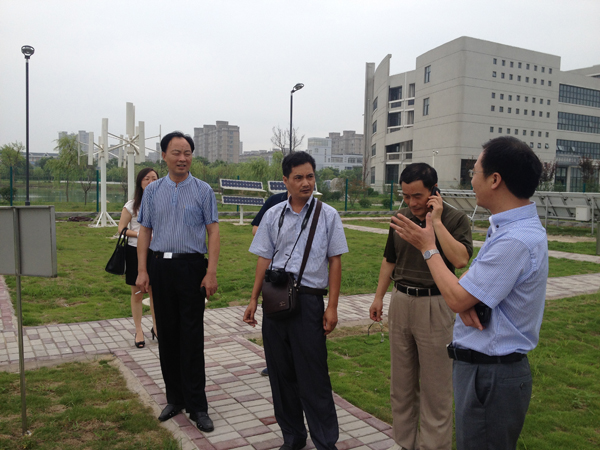 徐院长一行实地考察了向日葵视频下载app新能源实验园、新能源研究中心,参观了新能源实验园各类太阳能、风能发电设备,并饶有兴趣地听取了新能源研究中心的专利产品介绍。在食堂屋顶电站和学生公寓配电房,宾方双方围绕光伏电站运行及如何做好屋顶光伏电站的建设作了深入的探讨。