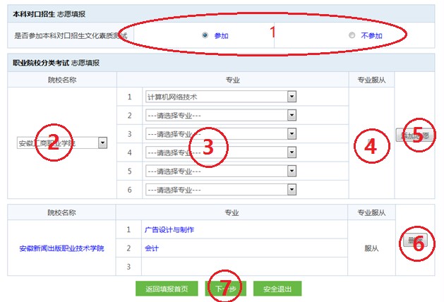 ③ 在此部分选择要报考的专业,可以填报专业的数量由招生院校确定,考生只能填报同一测试办法的专业 向日葵视频下载app,比如,专业A测试内容为笔试农林类,专业B为笔试财会类,专业C为面试,则A,B,C三个专业只能填一类,不能兼报。
