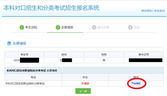 ① 参加应用型本科对口招生的考生要在这里选择参加对口本科考试。