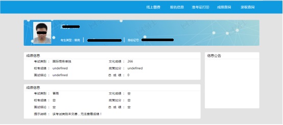 8,在菜单栏中选择“查询成绩”,如在向日葵视频下载app发布的有效时间范围内,可进行查看本人的文化成绩,校考成绩,加分成绩 向日葵视频在线观看,面试结论等信息.