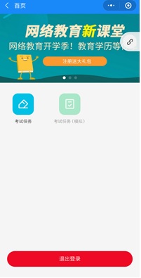 进入平台后出现两个菜单分别是考试任务和模拟考试,在正式考试前,平台会开放模拟考试供考生熟悉考试流程和操作方法,正式考试时将关闭模拟考试菜单,以避免混淆操作;