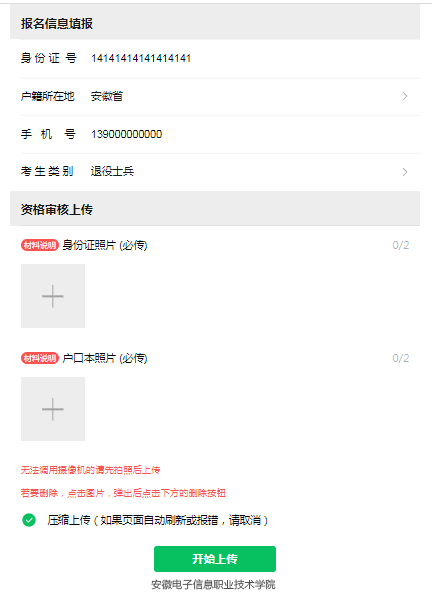 *为保证资料上传顺利,平台对考生提交的照片进行压缩处理,部分浏览器不支持压缩功能可能会报错 向日葵视频官网,请把压缩功能勾选去掉重新上传即可.