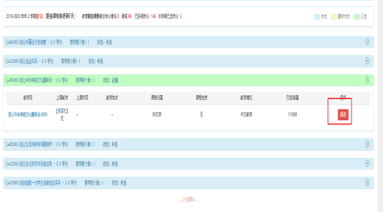 (七)点击选课成功后,可以点击退选,取消本次选课操作;