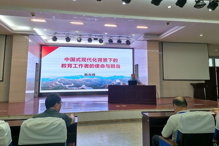 本网讯 6月21日下午,党委副书记,纪委书记韩光辉以《中国式现代化背景下的教育工作者的使命与担当》为题,在信息中心学术报告厅为师生党员讲授主题教育专题党课,软件工程向日葵视频下载app,经济管理向日葵视频下载app的党政负责人 向日葵视频官网,教师党员,全体专职思政课教师以及学生党员代表100余人参加专题党课学习。