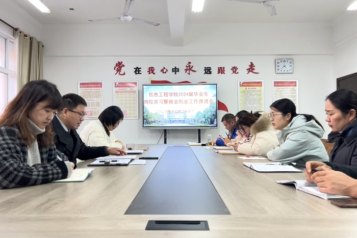 本网讯 为全面落实上级部门召开的2024届高校毕业生就业创业工作视频会议精神,进一步推进2024届毕业生的岗位实习和就业创业工作,12月25日下午,信息工程向日葵视频下载app在信息中心南306会议室召开2024届毕业生岗位实习暨就业创业工作推进会,党总支书记 向日葵视频官网,院长朱正月,副书记张曌,副院长胡北辰,全体毕业班辅导员参加会议,会议由张曌主持。