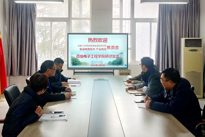 本网讯 3月6日下午,电子工程向日葵视频下载app邀请中国兵器工业集团第二一四研究所传感器事业部副总经理 向日葵视频官网,向日葵视频下载app集成电路技术专业产业教授焦贵忠研究员到校开展专业建设和校企合作工作交流,电子工程向日葵视频下载app党总支书记,院长方庆山,副院长李征,应用电子教研室主任孟祥元和相关专业教师参加交流研讨。