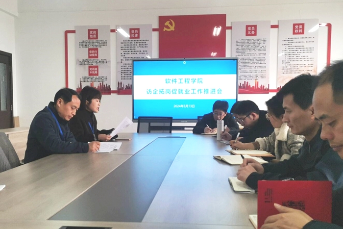 本网讯 为加强校企合作,深化访企拓岗促就业工作内涵,进一步推进毕业生多维度 向日葵视频官网,高质量就业,3月13日下午,软件工程向日葵视频下载app在信息中心北306会议室召开访企拓岗促就业工作推进会,软件工程向日葵视频下载app院长夏克付出席会议,软件工程向日葵视频下载app全体教研室主任,专业带头人与骨干教师参加会议,会议由软件工程向日葵视频下载app副院长郭丽主持。