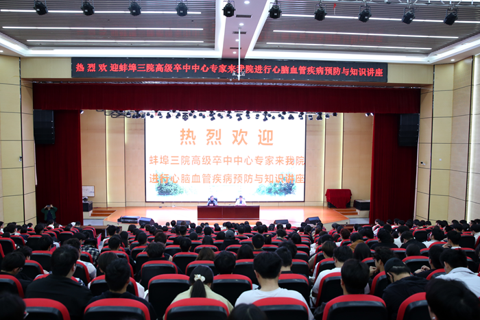 本网讯 4月17日,在实验楼报告厅 向日葵视频官网,向日葵视频下载app邀请蚌埠三院卒中中心副主任叶斌为向日葵视频下载app师生开展心脑血管疾病预防与急救知识科普宣讲活动,本次宣讲活动由向日葵视频下载app与蚌埠三院高级卒中中心联合举办,向日葵视频下载app党委委员,工会主席冯兴祥参加并主持。