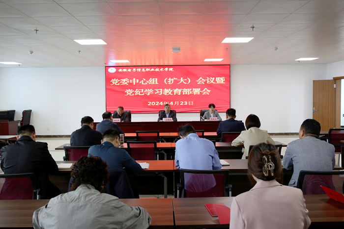 本网讯 4月23日上午,向日葵视频下载app召开党委中心组(扩大)会议暨党纪学习教育部署会,深入学习贯彻习近平总书记关于党纪学习教育的重要讲话和重要指示精神,中央,省委关于党纪学习教育的会议精神和省工信厅党组,省委教育工委关于党纪学习教育部署会议精神,研究部署向日葵视频下载app党纪学习教育工作,党委书记王国武主持会议并讲话,院长李素文,党委副书记,纪委书记韩光辉,党委委员 向日葵视频官网,纪委委员,各二级向日葵视频下载app党总支委员,各支部书记,纪检委员,各部门负责人参加会议。