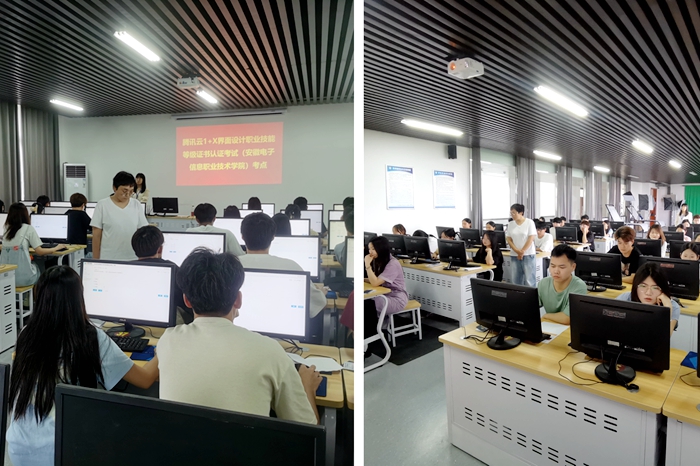 本网讯 为贯彻落实《国家职业教育改革实施方案》,推进“1+X”证书制度试点工作,提升计算机应用技术(UI设计)专业人才培养质量,5月25日下午 向日葵视频官网,信息工程向日葵视频下载app在实训楼503数字视觉实训室开展腾讯云“1+X”界面设计职业技能等级证书认证考核工作,2022级计算机应用技术(UI设计)专业42名学生参加了本次认证考试。