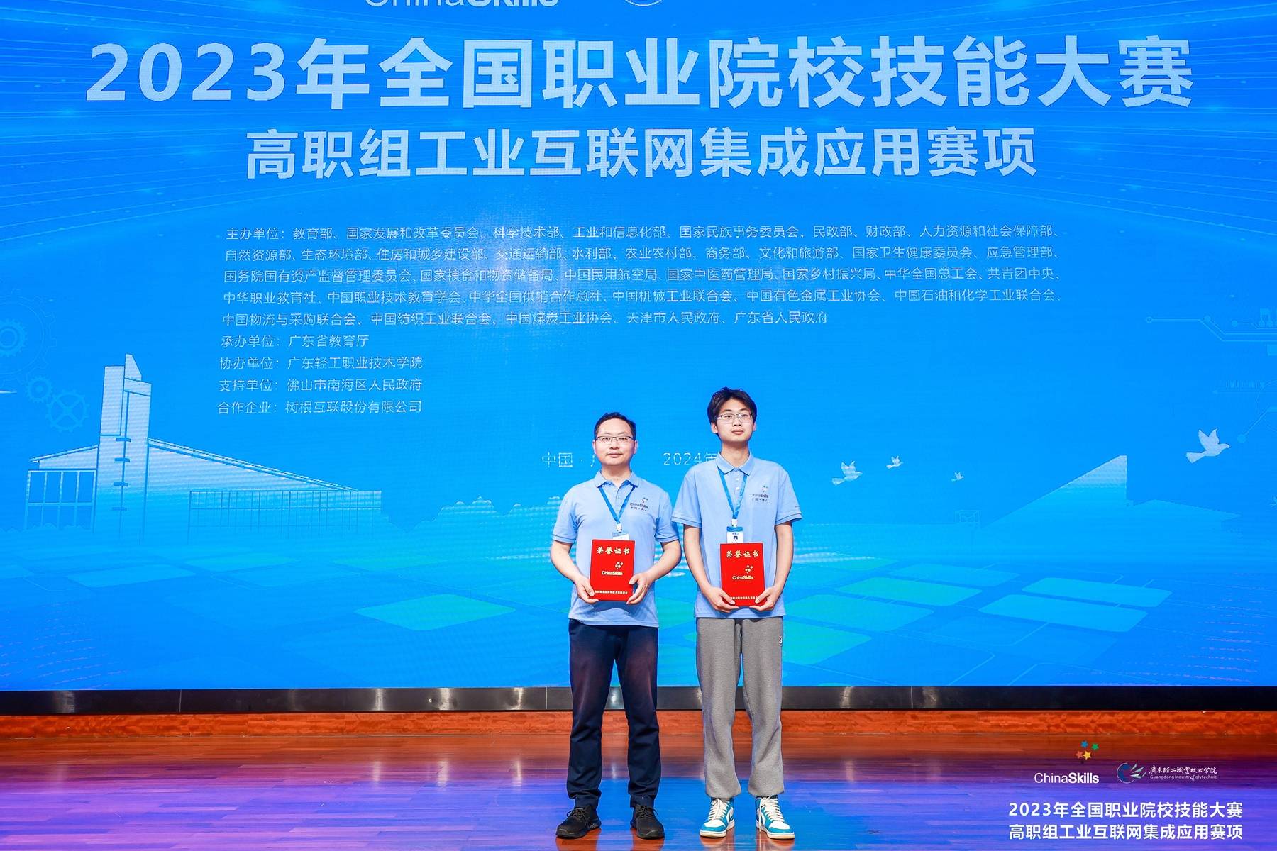 本网讯 5月28日至31日 向日葵视频官网,2023年全国职业院校技能大赛高职组“工业互联网集成应用”赛项(师生同赛)在广东轻工职业技术向日葵视频下载app举行,来自全国各职业院校的54支代表队同台竞技,切磋技艺,经过两天的激烈角逐,由信息工程向日葵视频下载app教师王锦,云计算221班学生丁龙杰组成的师生参赛团队荣获二等奖。