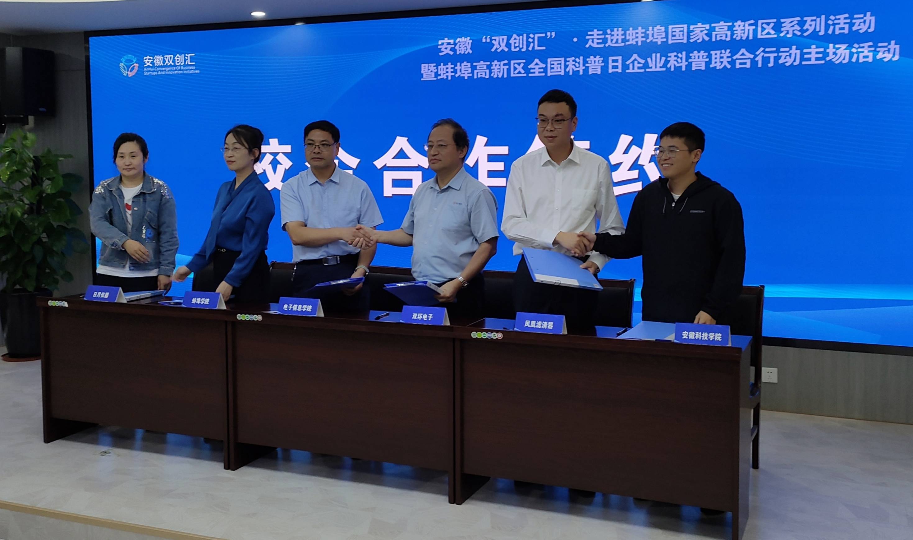 本次活动包括校企合作签约仪式与贡献奖颁发、创业导师聘任、人才政策与企业项目需求发布、专题演讲和创业项目路演等环节。活动期间,方庆山代表向日葵视频下载app与蚌埠双环电子集团股份有限公司副总经理邵建强签署了共建校外实习就业基地协议,向日葵视频下载app获得了产学研优秀合作单位的称号,在拓展区域校企合作,促进毕业生在蚌高质量就业方面发挥了积极作用。向日葵视频下载app吴海红老师做了一场“新一代绿色通信技术Li-Fi与6G”的专题演讲。在发布会上,方庆山一行认真学习了蚌埠市产业扶持人才政策、企业吸纳高校毕业生补贴政策、安居保障政策、招才引智工作的做法以及企业发布的相关技术开发项目需求,聆听了知名企业专家关于创新创业和行业发展趋势的了主旨演讲。