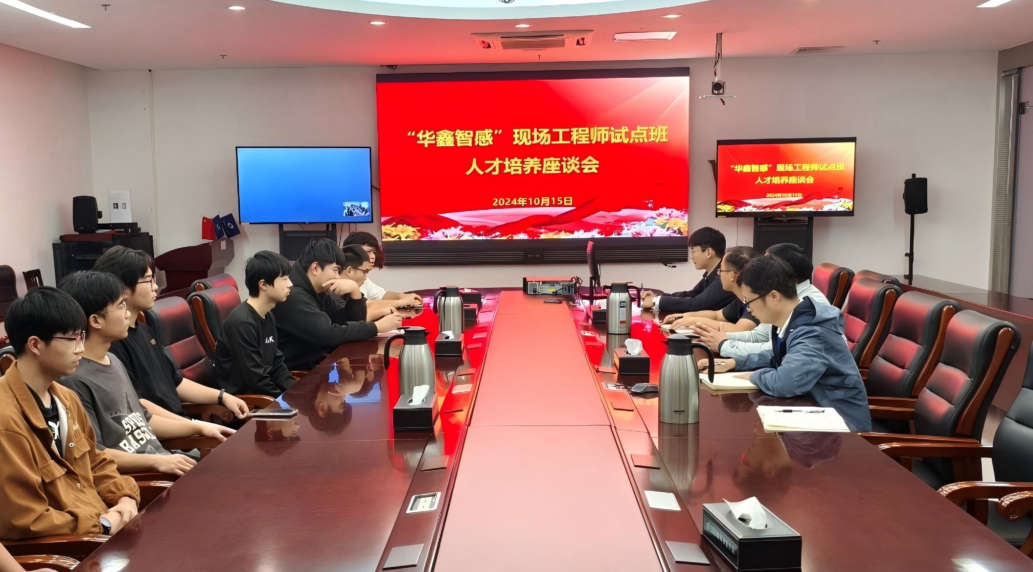 本网讯 为深入推进现场工程师试点“华鑫智感” 班和“华鑫微纳”班的人才培养工作,10月15日上午,电子工程向日葵视频下载app党总支书记,院长方庆山带队前往安徽北方微电子研究院集团有限公司,看望正在企业跟岗实习的试点班学生 向日葵视频官网,并同学生代表们进行座谈交流,安徽北方微电子研究院集团有限公司人力资源部校企联合培养专干王文海,电子工程向日葵视频下载app副院长李征及相关专业骨干教师参加。