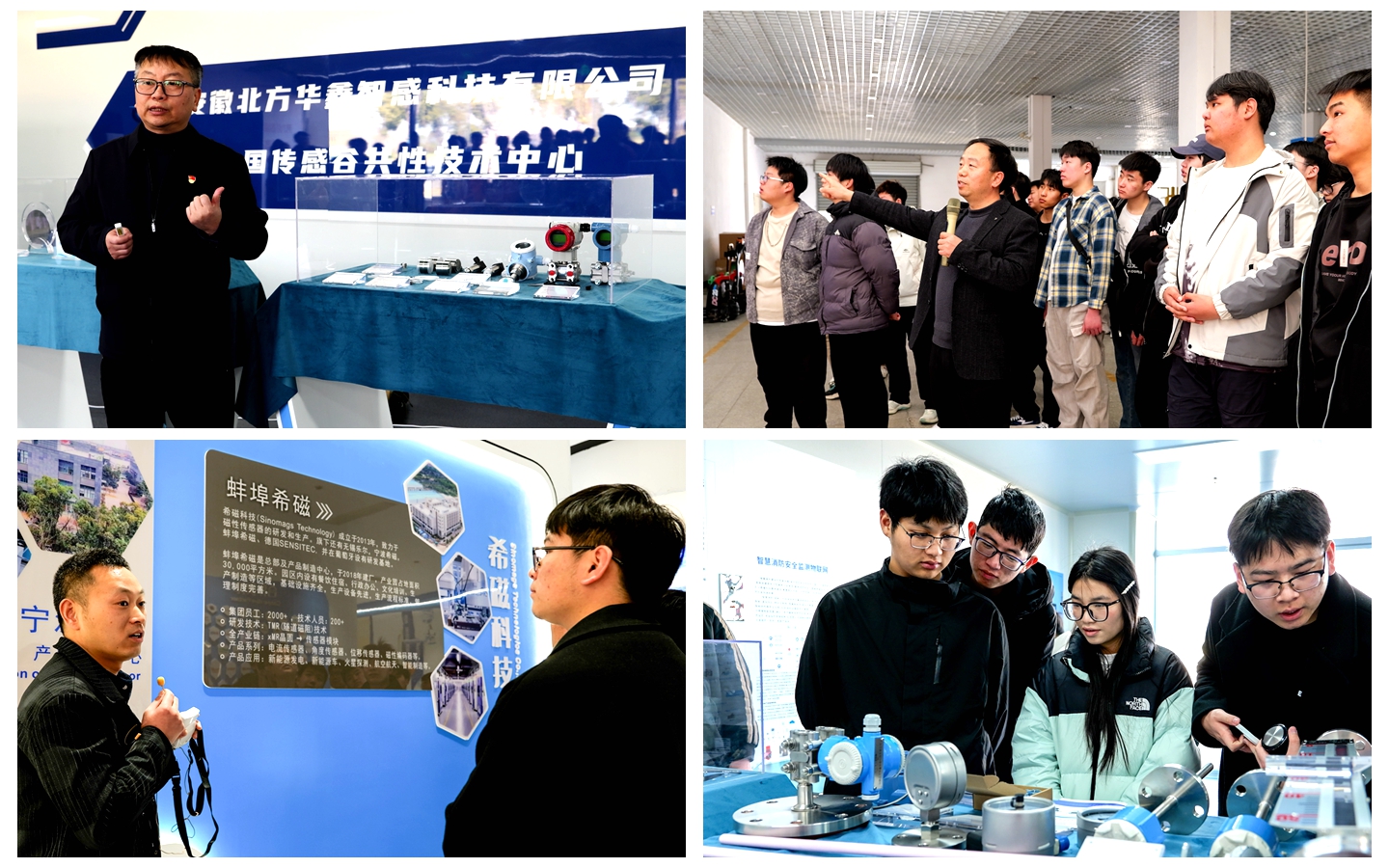 在中国传感谷,师生们分别走访了安徽北方华鑫智感科技有限公司、安徽禹芯半导体科技有限公司、安徽希磁科技股份有限公司和蚌埠金实科技有限公司。在安徽北方华鑫智感科技有限公司,总经理程晋阳详细介绍了公司在工业传感器等领域的研发成果,并带领师生参观了高精度传感器生产线;在安徽禹芯半导体科技有限公司,副总经理李华东重点介绍公司在集成电路封装测试领域的技术成果,并向参观师生演示了集成电路封装测试的实际流程;在安徽希磁科技股份有限公司,总裁办主任赵乾阳向师生介绍磁性材料在新能源汽车、智能家电等领域的创新应用;在蚌埠金实科技有限公司,副总经理吴昊以新能源汽车电池生产全流程为主题,通过自动化生产线展示,让学生直观感受工业机器人、智能检测系统的实际运作场景。走访交流后,各企业均表示,未来将优先为向日葵视频下载app毕业生提供技术操作、生产管理等岗位,并期待通过“学徒制班”“现场工程师班”等模式协同开展高技能人才培养,进一步深化校企合作。