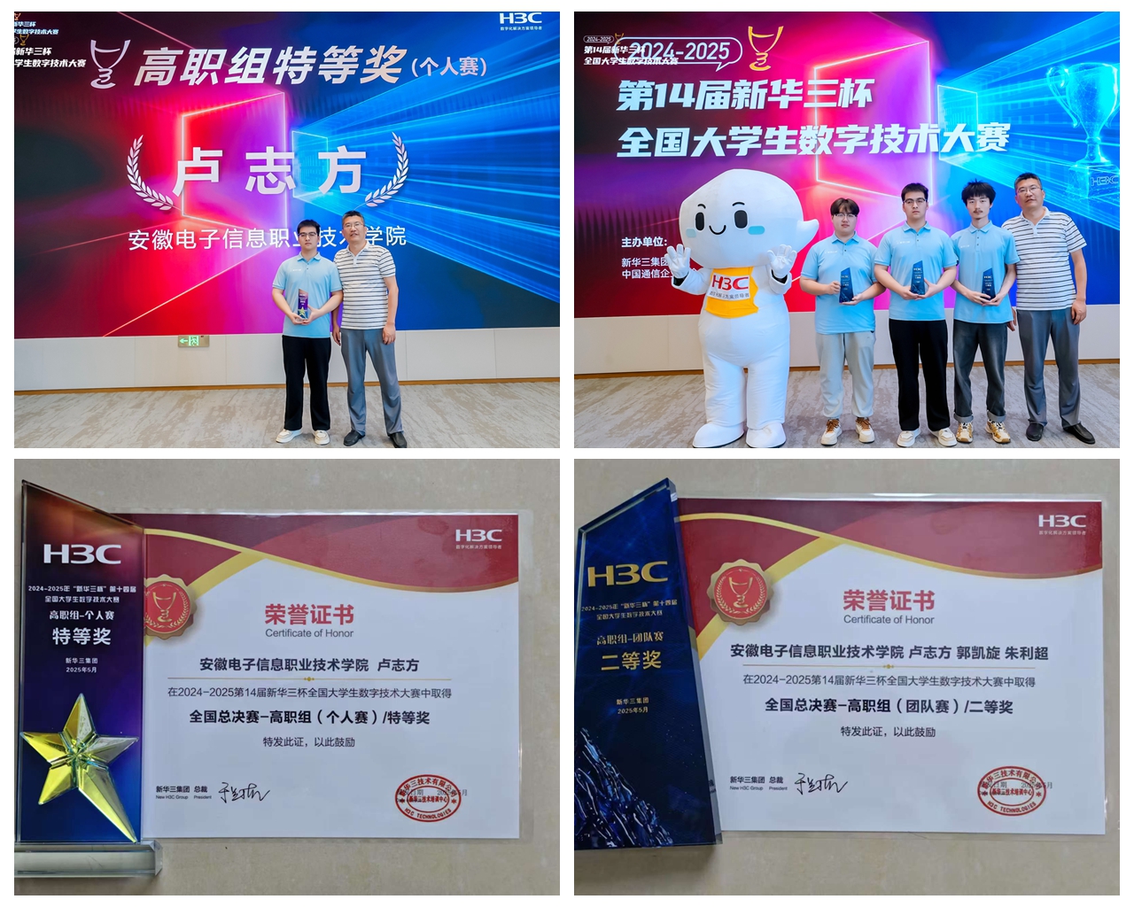 本网讯 近日 向日葵视频官网,第14届新华三杯全国大学生数字技术大赛总决赛在新华三集团杭州总部圆满落幕,我院软件工程向日葵视频下载app网络221班卢志方同学以总决赛总成绩第一的好成绩,勇夺高职组(个人赛)唯一特等奖,其与郭凯旋,朱利超组成的团队荣获高职组(团队赛)二等奖,在新华三集团杭州总部以精湛技能诠释 “职教之光”,成为赛场上的夺目焦点。