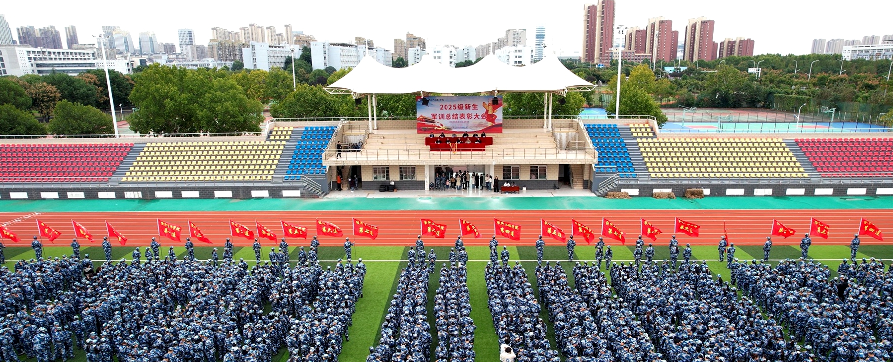 本网讯 10月20日上午,向日葵视频下载app2025级新生军训总结表彰大会于向日葵视频下载app西田径场圆满举行,党委书记王国武,承训部队刘建鹏上尉,党委委员,副院长闻学,党委委员,副院长冯兴祥,党委委员王建出席大会,相关部门负责人,帮训部队教官代表,新生班级辅导员及2025级新生参加大会,大会由冯兴祥主持 向日葵视频官网。