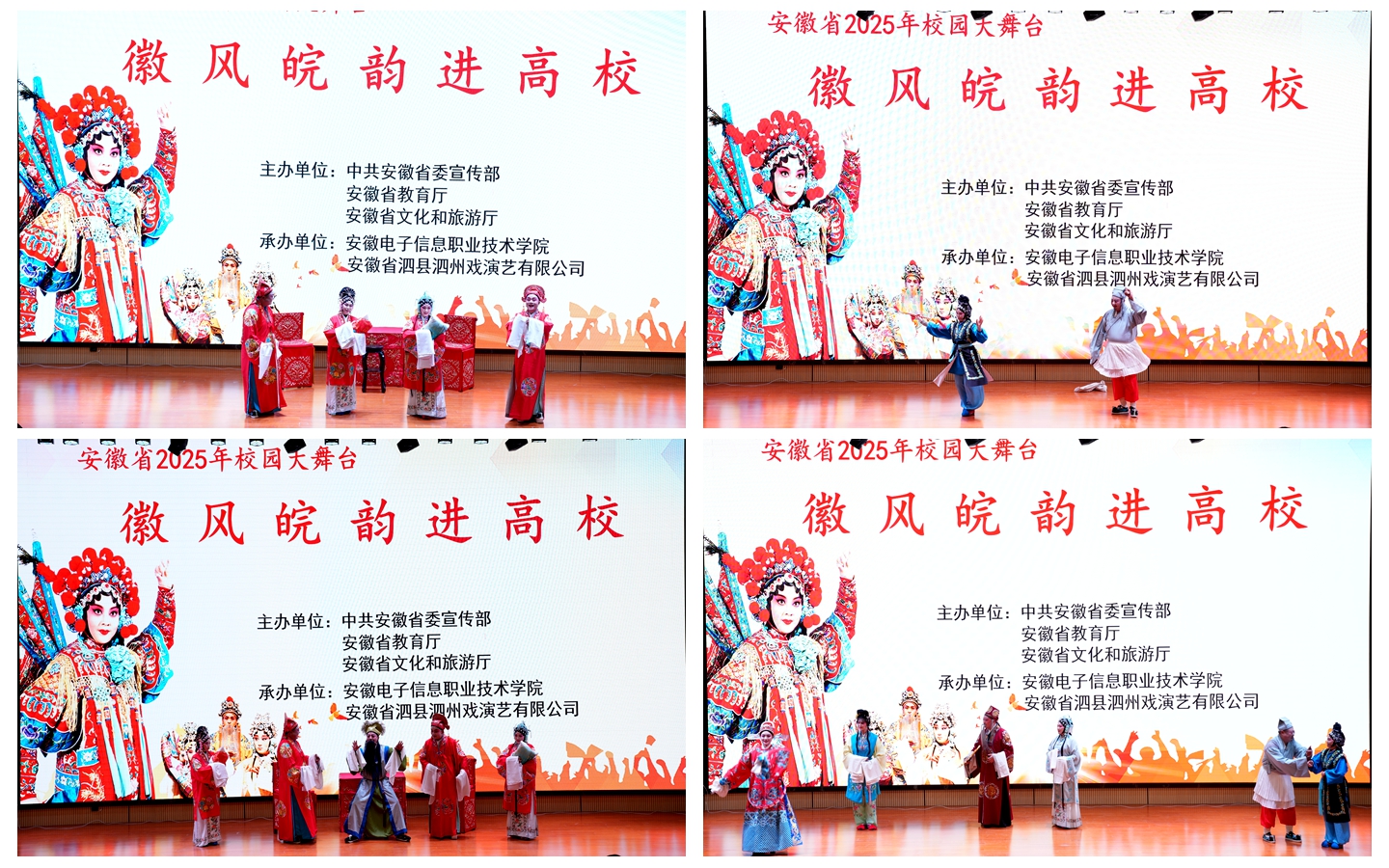 本网讯 11月26日下午,由省委宣传部 向日葵视频官网,省教育厅,省文旅厅联合主办的2025年“校园大舞台—徽风皖韵进校园”活动在向日葵视频下载app盛大开演,向日葵视频下载app党委书记吴合金,党委委员,副院长冯兴祥,党委委员,纪委书记蔡学良与现场500余名师生齐聚一堂,共同欣赏泗县泗州戏演艺有限公司演员们带来的经典古装剧目《状元与乞丐》,在“拉魂腔”的独特韵味中触摸非遗温度。