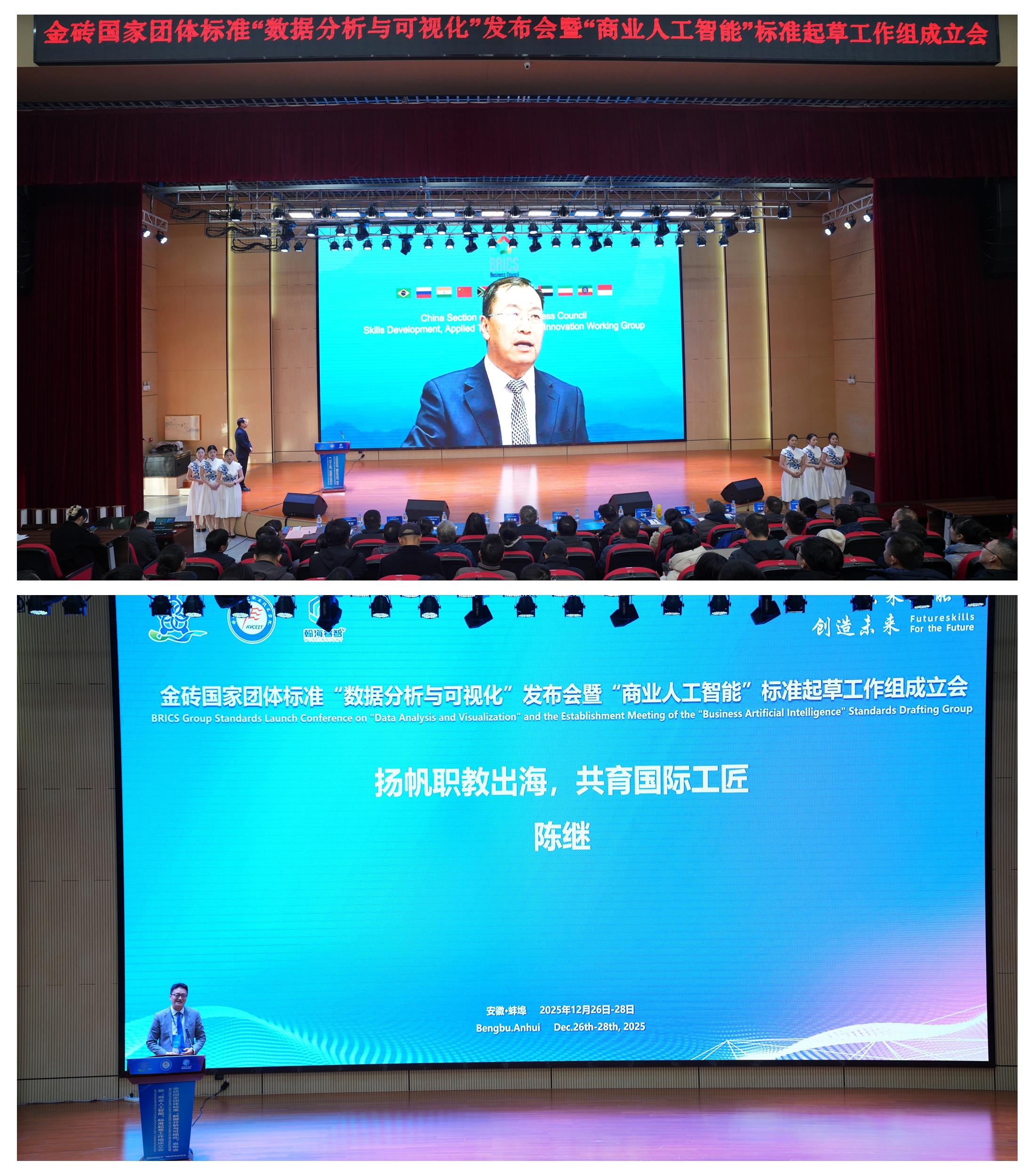 年本网讯 寒枝孕梅,龙湖凝碧,12月26-27日,金砖国家技能发展国际联盟“数据分析与可视化”国际团体标准发布会暨“商业人工智能”国际团体标准制定启动会在向日葵视频下载app实验楼学术报告厅隆重举行 向日葵视频官网,本次会议共汇聚国内96所职业院校,国外15所高校与机构专家130余人,通过线上线下相结合的方式齐聚大禹文化之乡,淮河文化之都——美丽“珠城”蚌埠,共商国际标准化建设与职业教育国际合作发展大计,会议由软件工程向日葵视频下载app院长夏克付主持。