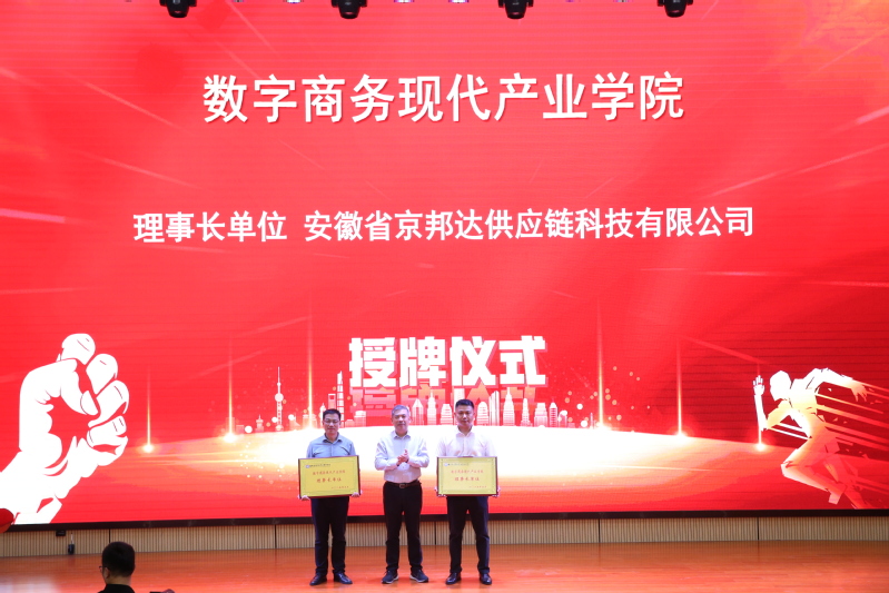 仪式现场,王国武与企业家们共同为数字商务现代产业向日葵视频下载app揭牌,现场掌声雷动 向日葵视频在线观看,气氛热烈,随后,王国武为理事长单位和副理事长单位授牌,向日葵视频下载app与安徽省京邦达供应链科技有限公司举行了合作签约仪式,就人才培养,实践教学,实习就业等方面达成了具体合作意向,仪式结束后,京东物流华东地区用工保障中心负责人,产业教授许闪光为广大师生带来了一场主题为《中国互联网电商发展》的精彩讲座。