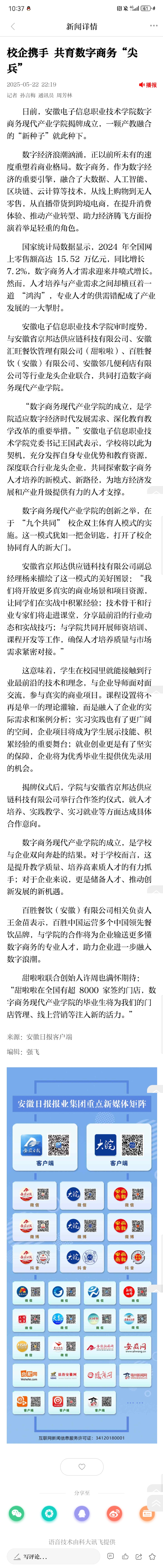 安徽日报:校企携手 共育数字商务“尖兵”