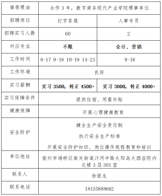 经济管理向日葵视频下载app岗位实习单位推荐:宿州云伙计电子商务有限公司