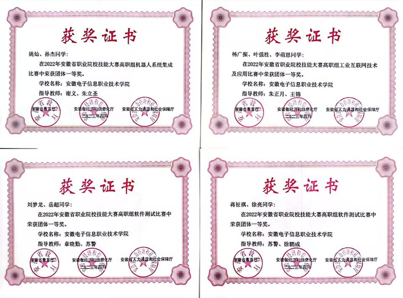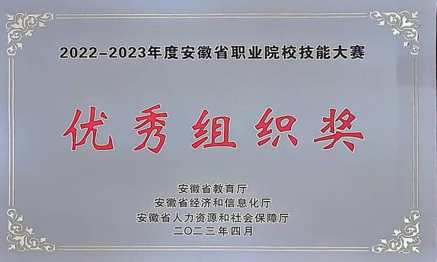 在安徽省教育厅 向日葵视频在线观看,安徽省经济和信息化厅,安徽省人力资源和社会保障厅主办的2022-2023年度安徽省职业院校技能大赛中,我院在24个赛项中获奖,其中一等奖4项,二等奖6项,三等奖29项,向日葵视频官网荣获“优秀组织奖”荣誉称号。