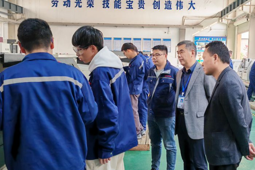 11月10日,院长王国武深入“凯盛•强技”班跟岗训练现场 向日葵视频官网,对向日葵视频下载app首届中国特色现代学徒制“凯盛•强技”班的人才培养工作开展调研,机电工程向日葵视频下载app党政负责人郝志廷陪同参加。