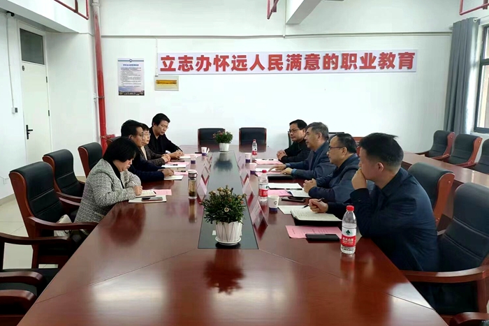 怀远县教育体育局党委书记、局长刘纪春,怀远县中等职业技术向日葵视频官网校长王小永等接待了王国武一行。座谈会上,刘纪春介绍了怀远县的职业教育现状与相关产业发展情况;王小永对怀远县中等职业技术向日葵视频官网的发展历程、专业设置和师资力量等做了详细介绍。王国武从让社会满意、让家长放心、让学生成才三个方面谈了自己对中高职贯通培养的思考,就深入校企合作参与中职向日葵视频官网学生技能培养的问题给出了建议,对后续与向日葵视频下载app相关专业的人才贯通培养工作提出实施意见。