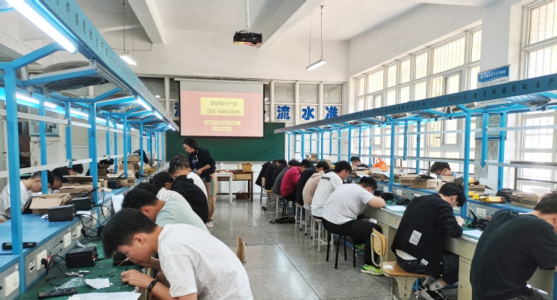“智能电子产品组装与调试”竞赛对接安徽省职业院校技能大赛(高职组)“智能电子产品设计与开发”赛项,重点考查参赛选手基本电子元器件的识别与检测、电子元件焊接工具的使用以及智能电子产品装配与调试的能力。电子工程向日葵视频下载app高度重视本次竞赛,赛前组织专业教师认真研讨和制定赛项规程,参考安徽省职业院校技能大赛赛题进行命题,最终高质量完成该赛项的组织工作。